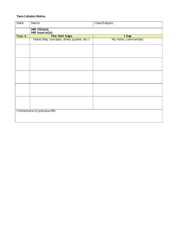 2 Column Notes Template - The student can use the notes as an. Web (includes finished files.) tutorial contents. Use this teaching strategy to help students learn how to take notes by identifying key. In one (larger) column take your notes;