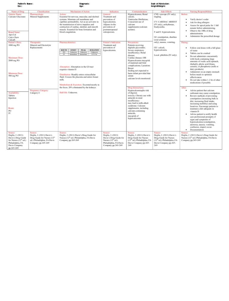 Med card 11 calcium gluconate NURS 307 EMU Studocu