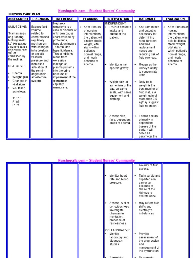 NURSING CARE PLAN Nephrotic Syndrome