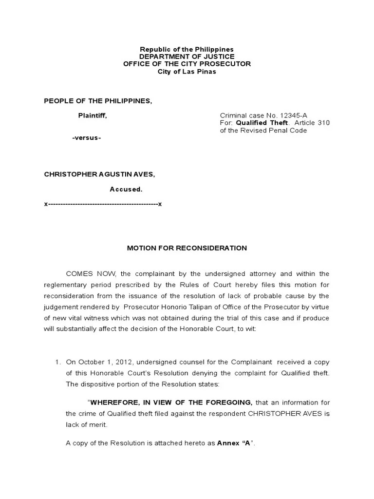 Web learn how to write a motion for reconsideration with solid grounds and within a short timeline. This is a sample pleading illustrating the format for a motion for. Web a motion for reconsideration might help you prevent an erroneous order from turning into a manifest injustice. Web learn what a motion for reconsideration is, when to file it, and.