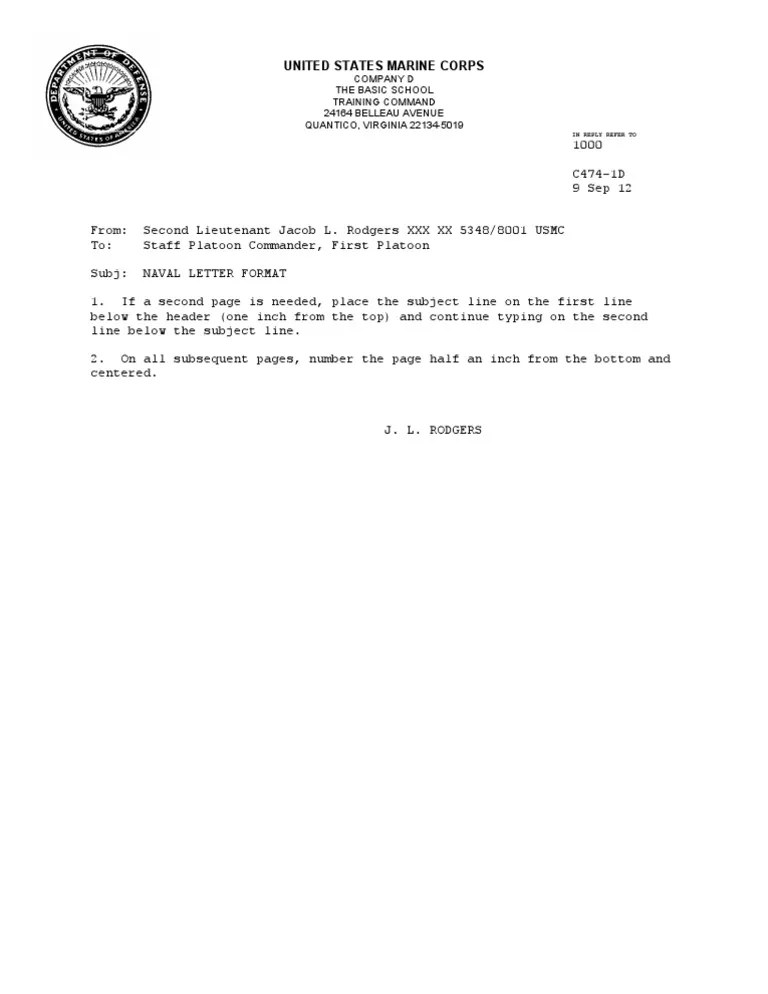 Naval Letter Template Military Units And Formations Uniformed