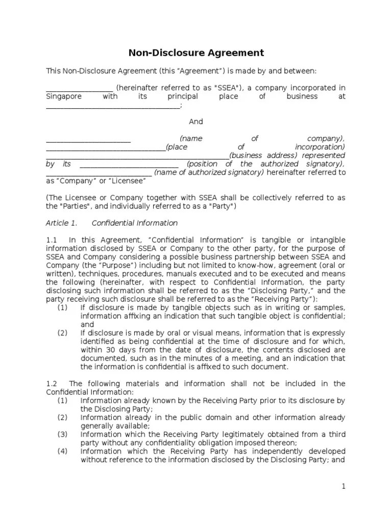 NonDisclosure Agreement Template Free Download Easy Legal Docs